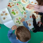 In particolare, il laboratorio si è concentrato sulla scoperta della piramide alimentare e del “piatto del mangiar sano”. I bambini, chiamati a completare una grande piramide con alimenti magnetici, hanno riflettuto sulla frequenza con cui è corretto consumare i diversi cibi, confrontandosi anche sulle proprie abitudini alimentari. Successivamente, attraverso attività pratiche di gruppo, hanno sperimentato come comporre un pasto equilibrato, comprendendo l’importanza di una dieta varia e bilanciata.