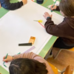 Le immagini raccontano con semplicità ed efficacia il percorso vissuto dagli alunni: momenti di riflessione e di realizzazione di cartelloni, con cura e coinvolgimento di ogni bambino, rendendo il lavoro davvero corale.