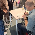 Gli alunni delle classi seconde, che avevano già letto in classe il testo insieme agli insegnanti, sono stati sollecitati dall’autore a rivolgergli delle domande, curiosità rispetto alla storia. Geda ha raccontato il suo incontro con il protagonista Enaiatollah Akbari, un ragazzo afgano che, a causa della guerra e le persecuzioni talebane, è stato costretto a lasciare la sua terra in cerca di salvezza, il racconto della sua vicenda personale, gli ha ispirato la scrittura del libro. Ha spiegato il significato del titolo “Nel mare ci sono i coccodrilli”: i coccodrilli rappresentano i pericoli immaginati e reali che affrontano i migranti, soprattutto i minori che non conoscono il mare e non sanno neppure nuotare ma si avventurano in situazioni molto pericolose, pur di avere la possibilità di una vita normale. Le curiosità da parte degli alunni, riguardo al protagonista della storia sono state tante, le domande hanno spaziato anche sulla sua vita attuale, l’autore ha risposto con grande attenzione.