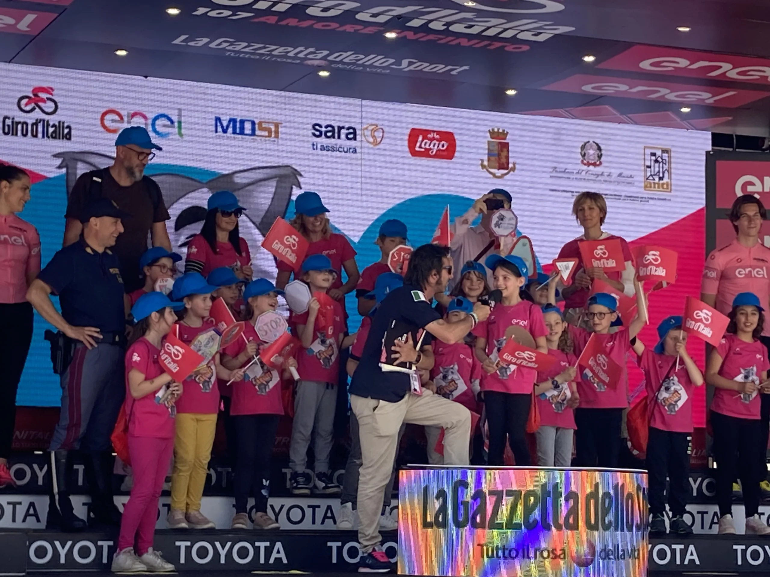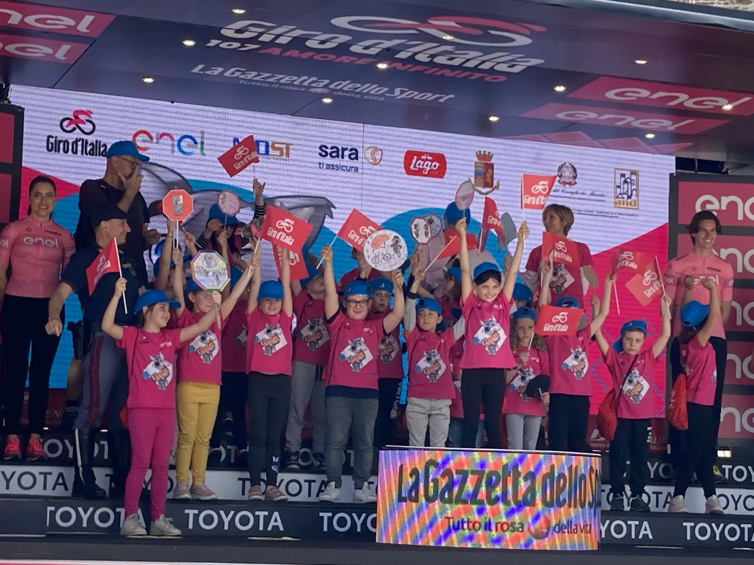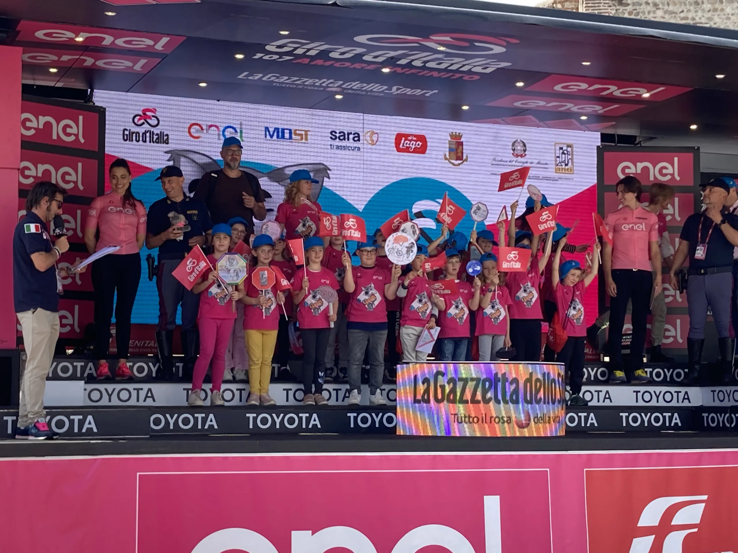 Saliti sul palco del Giro d’Italia, tra gli applausi e l’emozione, i piccoli ciclisti hanno ricevuto il loro premio con un sorriso smagliante. Un momento indimenticabile che rimarrà impresso nella loro memoria per sempre.