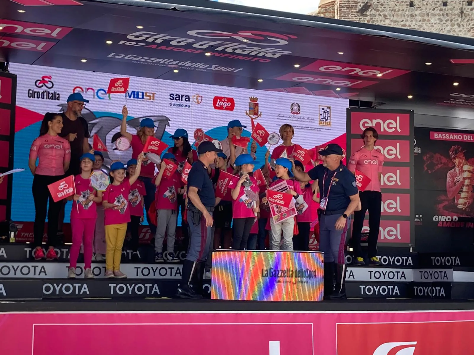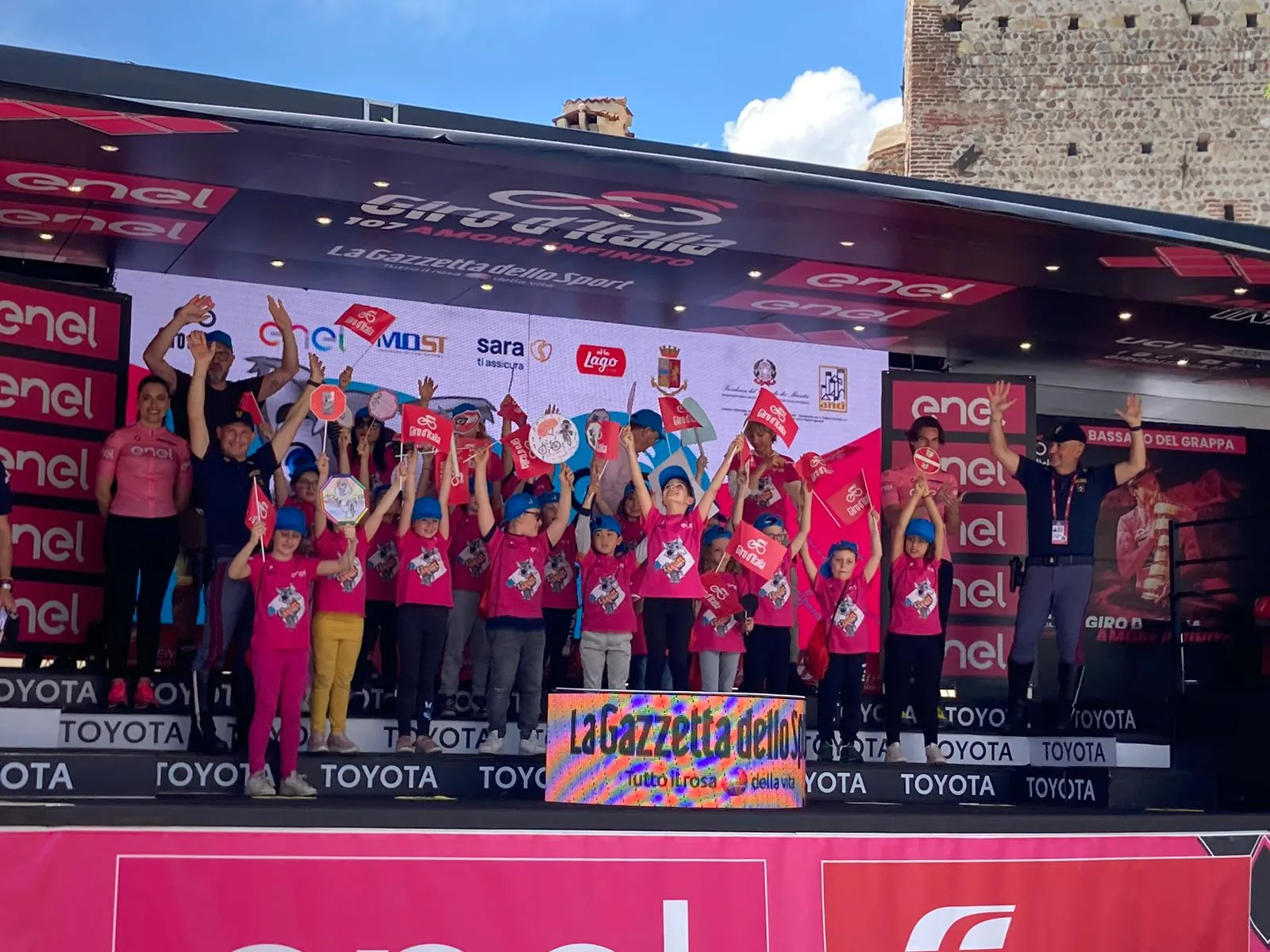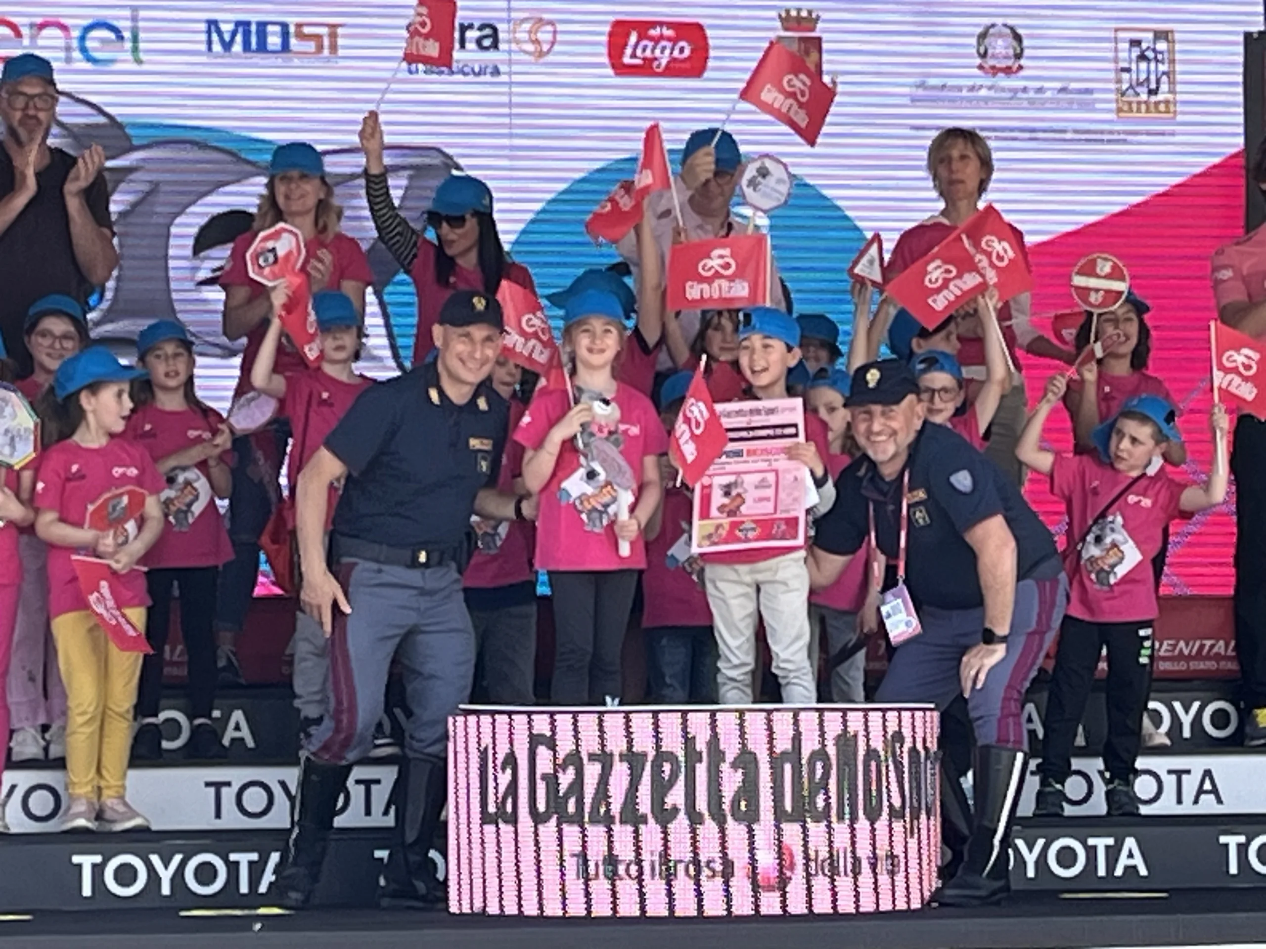 Saliti sul palco del Giro d’Italia, tra gli applausi e l’emozione, i piccoli ciclisti hanno ricevuto il loro premio con un sorriso smagliante. Un momento indimenticabile che rimarrà impresso nella loro memoria per sempre.