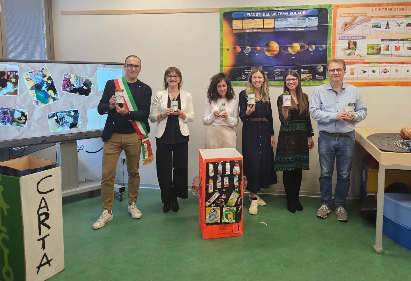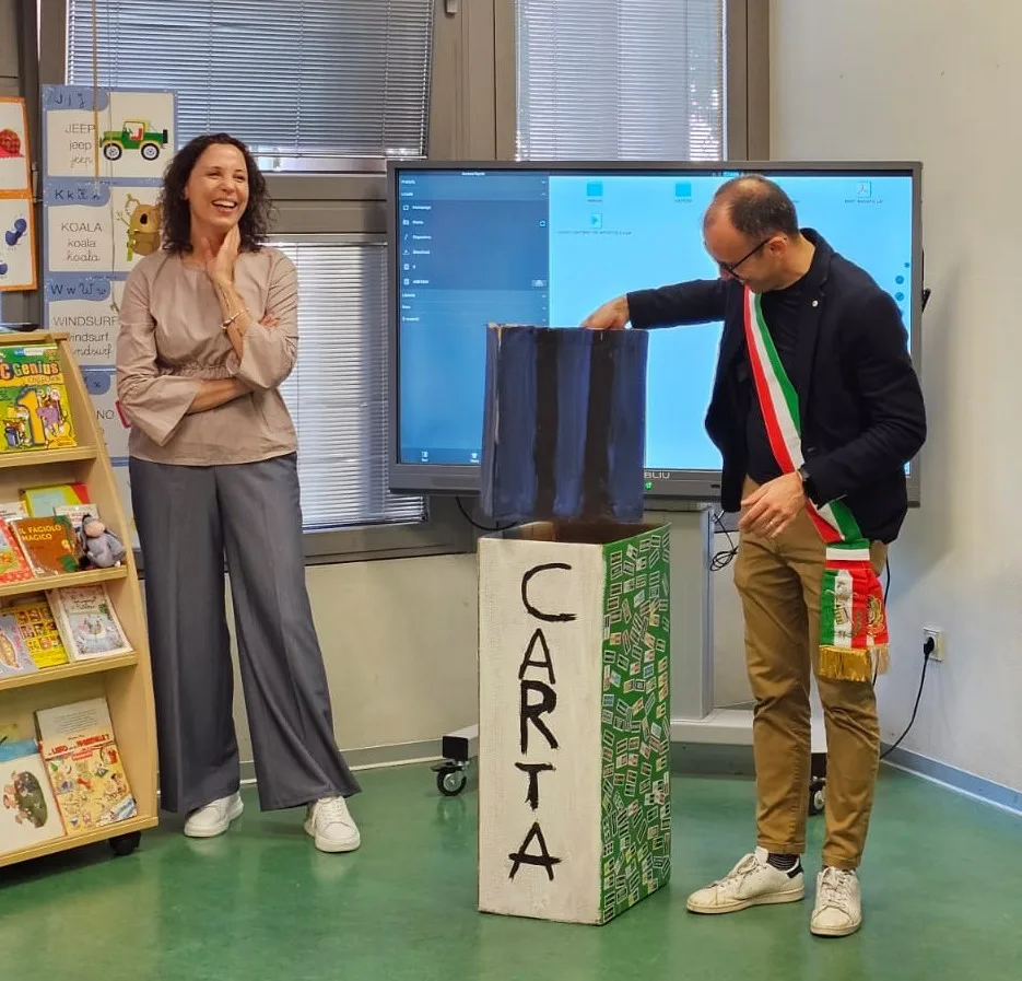 La premiazione, avvenuta venerdì 24 maggio presso l’aula steam della scuola primaria “Dante Alighieri”, è stata un momento di grande festa e soddisfazione per tutti. Erano presenti il sindaco Simone Bontorin, la vice-sindaco/assessora all’ambiente Elisabetta Casagrande e Nicoletta Garbo di Packstyle, in qualità di Ambassador di Fondazione Carta Etica del Packaging.
